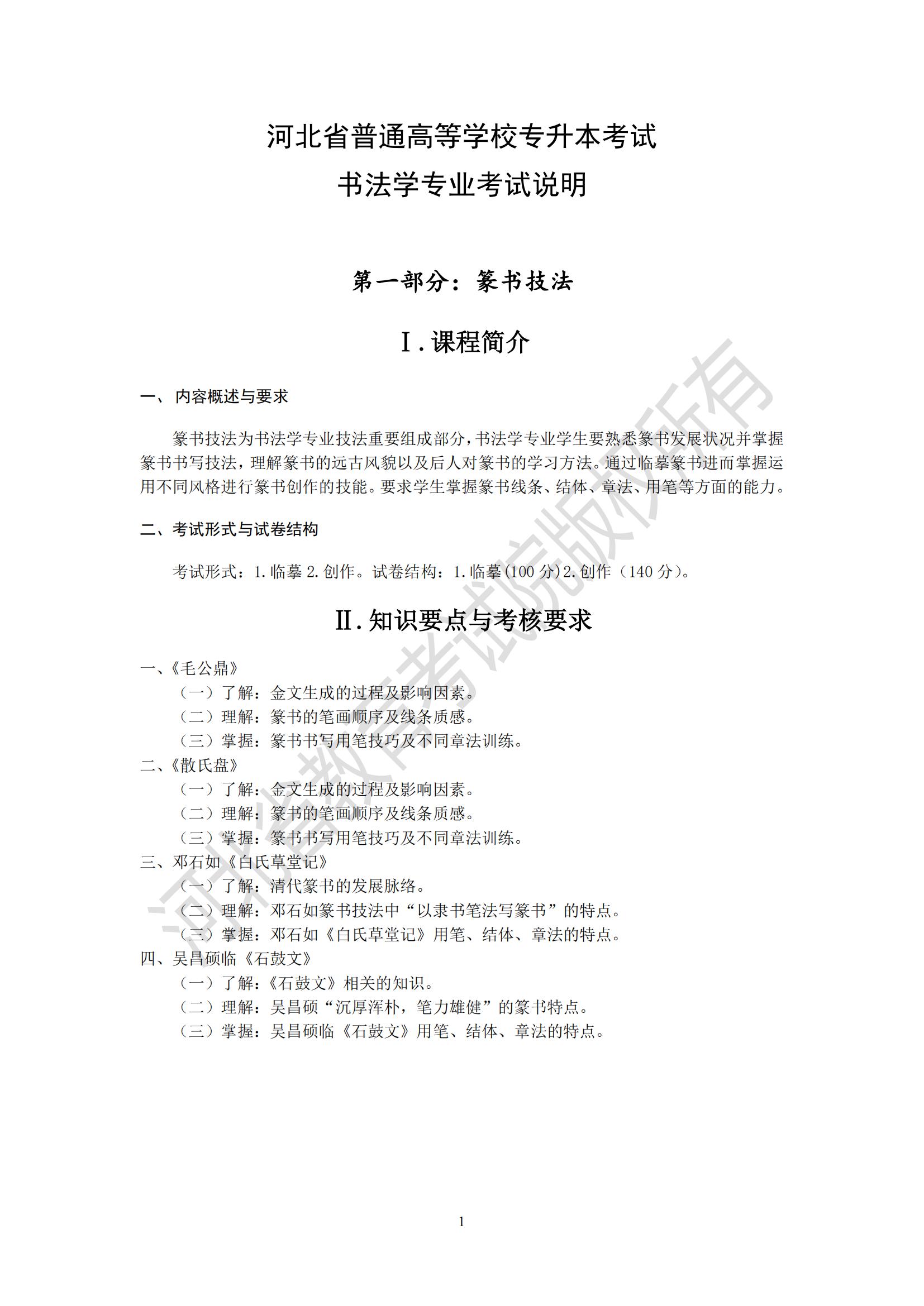 2025年河北專升本考試藝術類-書法學專業篆書技法考試大綱(臨摹、創作):