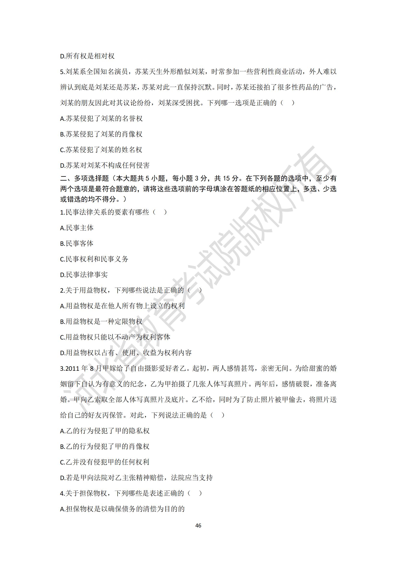 河北省普通高等學校專升本考試民法學模擬試卷及參考答案