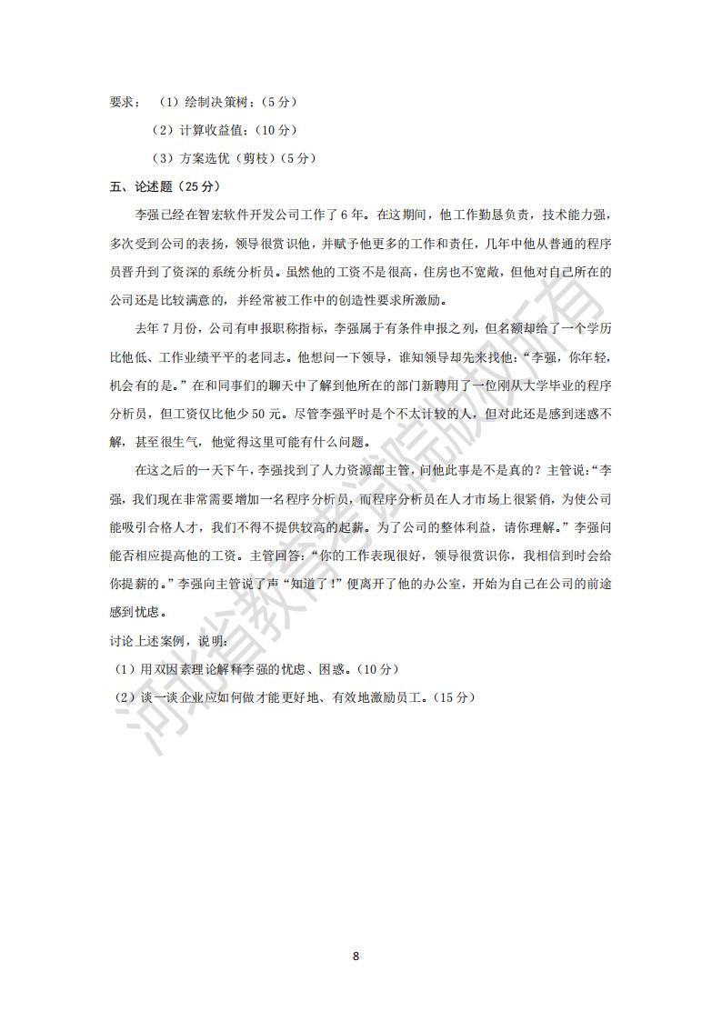 河北省普通高等學校專升本考試管理學原理模擬試卷及參考答案