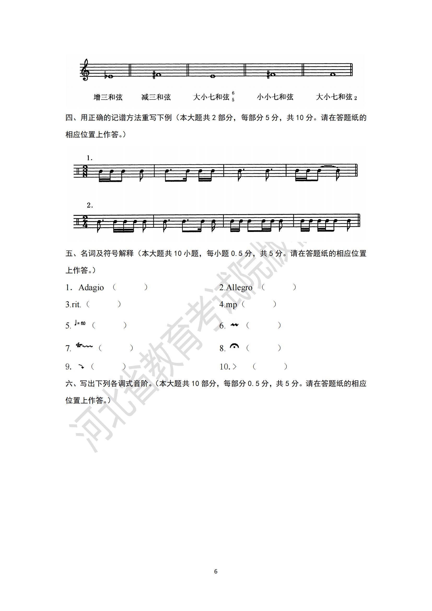 2025年河北省專升本考試藝術(shù)類基本樂理模擬試卷及參考答案
