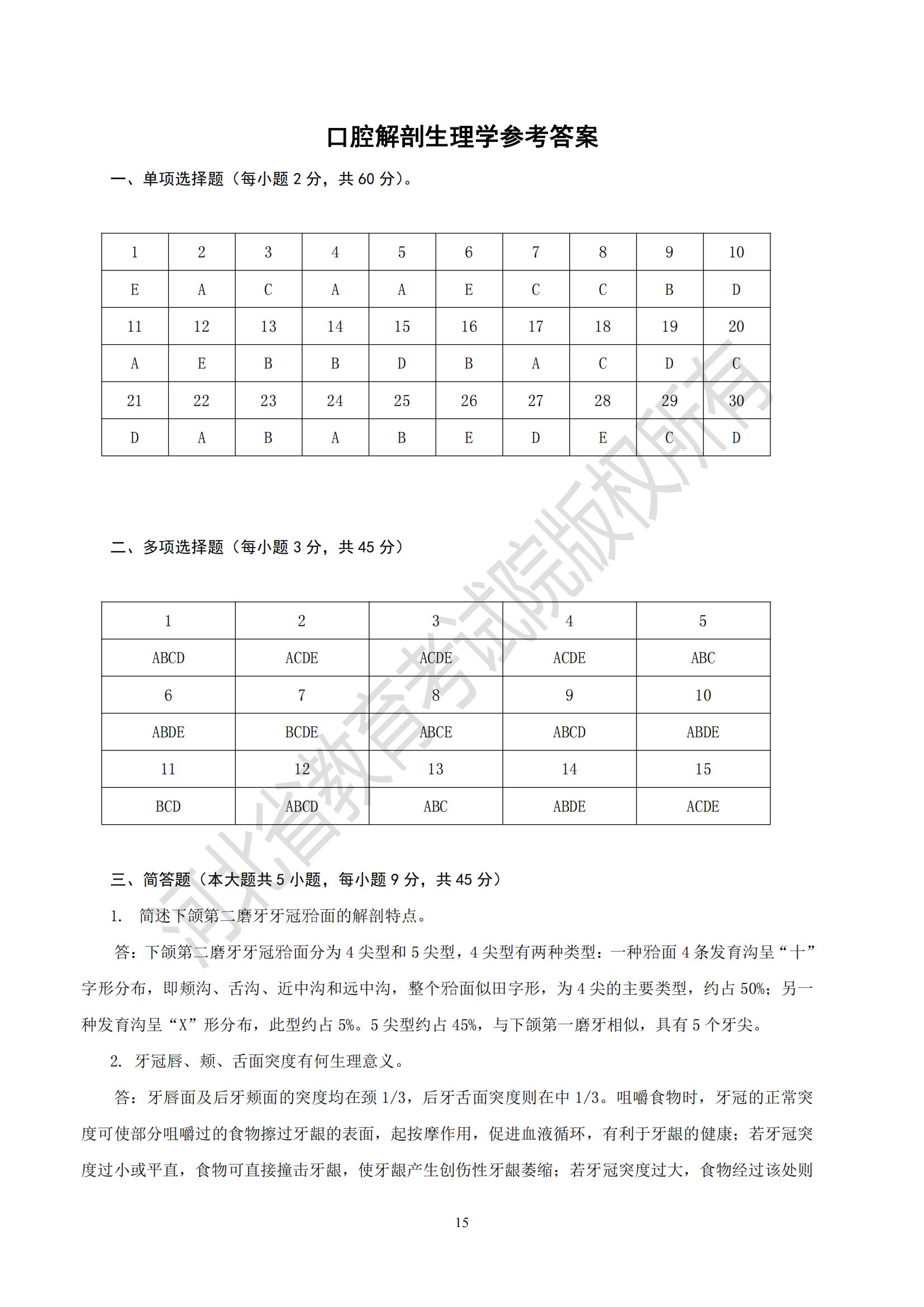2025年河北省專升本考試醫(yī)學(xué)類口腔解剖生理學(xué)模擬試卷及參考答案:
