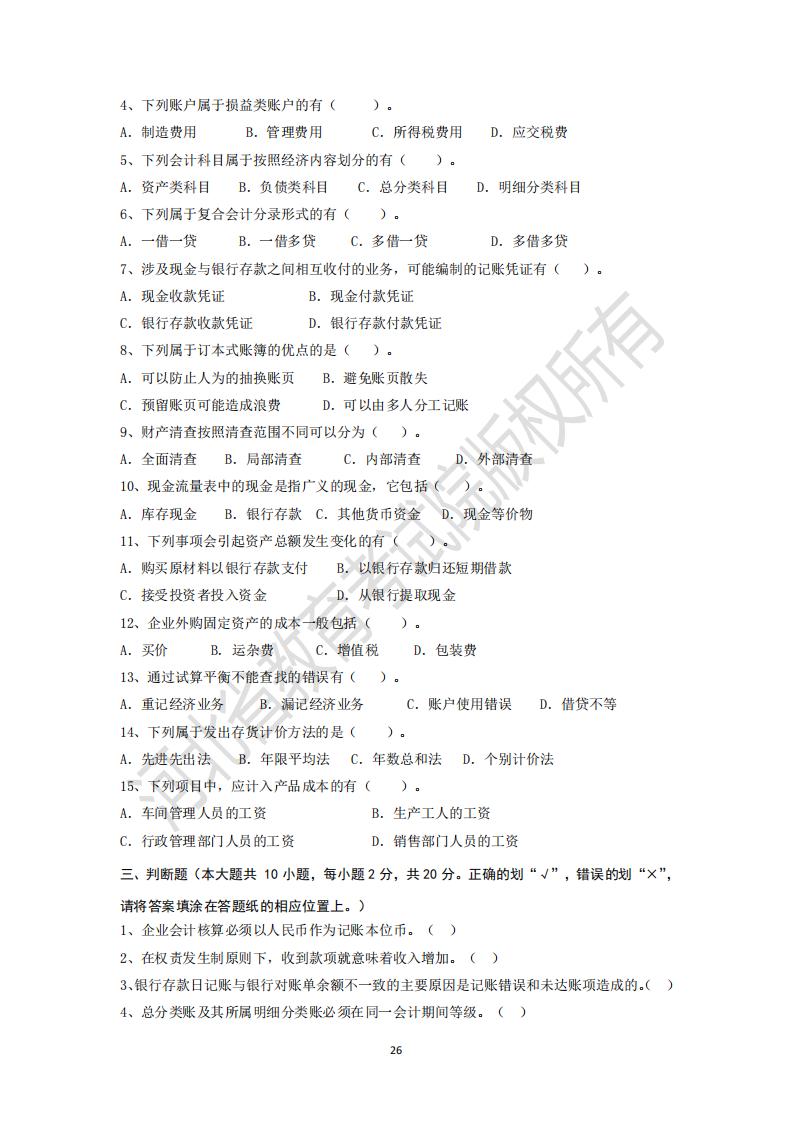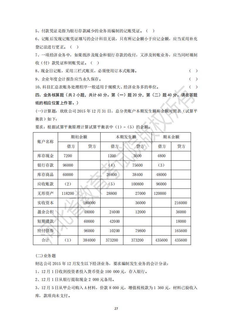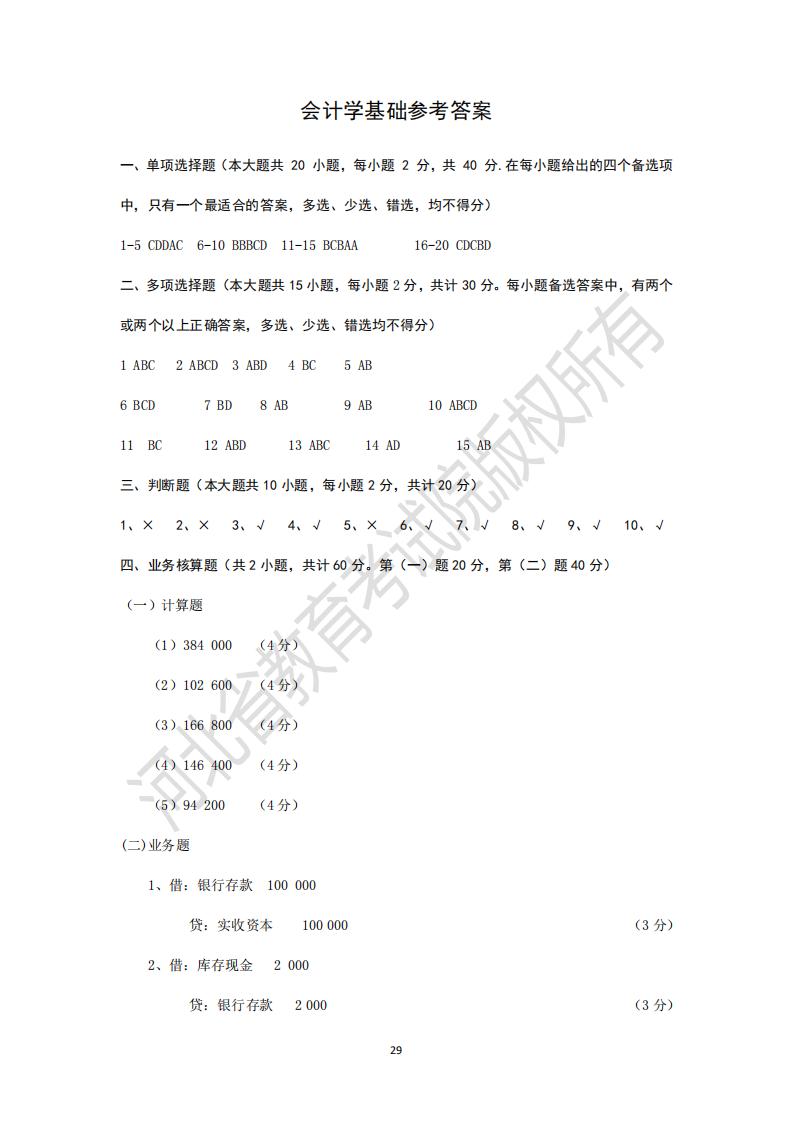 河北省高等學校專升本考試會計學基礎模擬試卷及參考答案