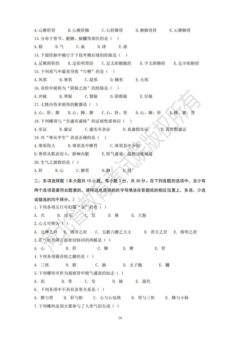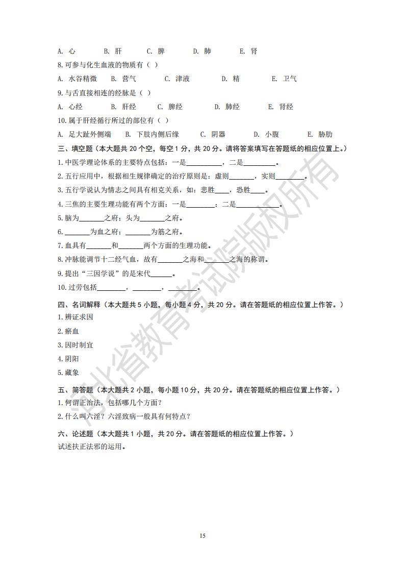 河北省普通高等學校專升本考試中醫基礎理論模擬試卷
