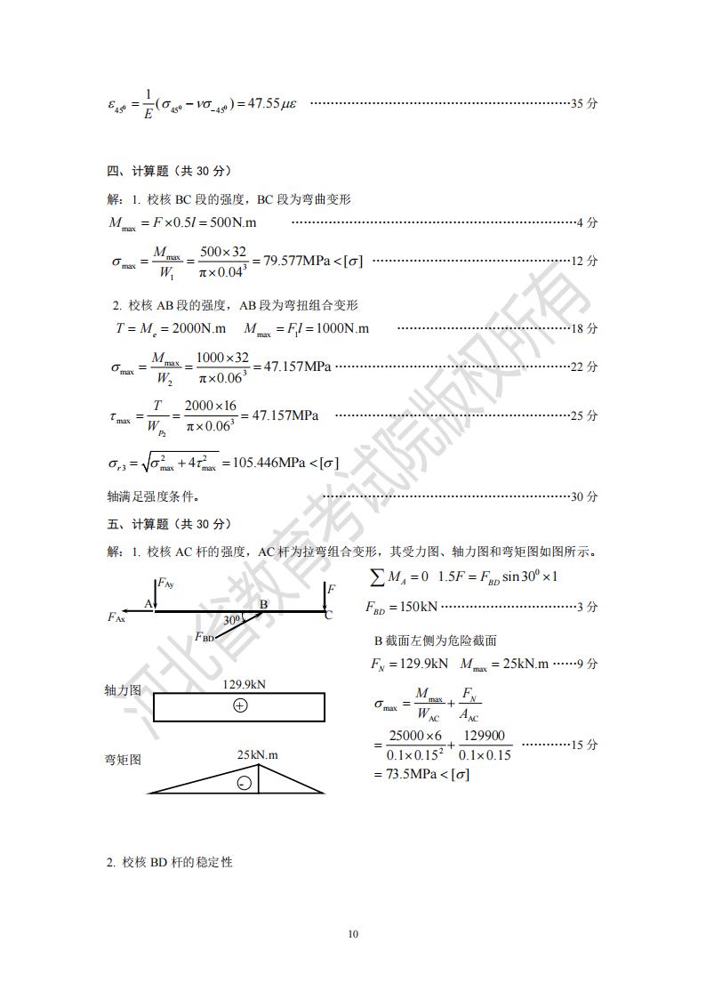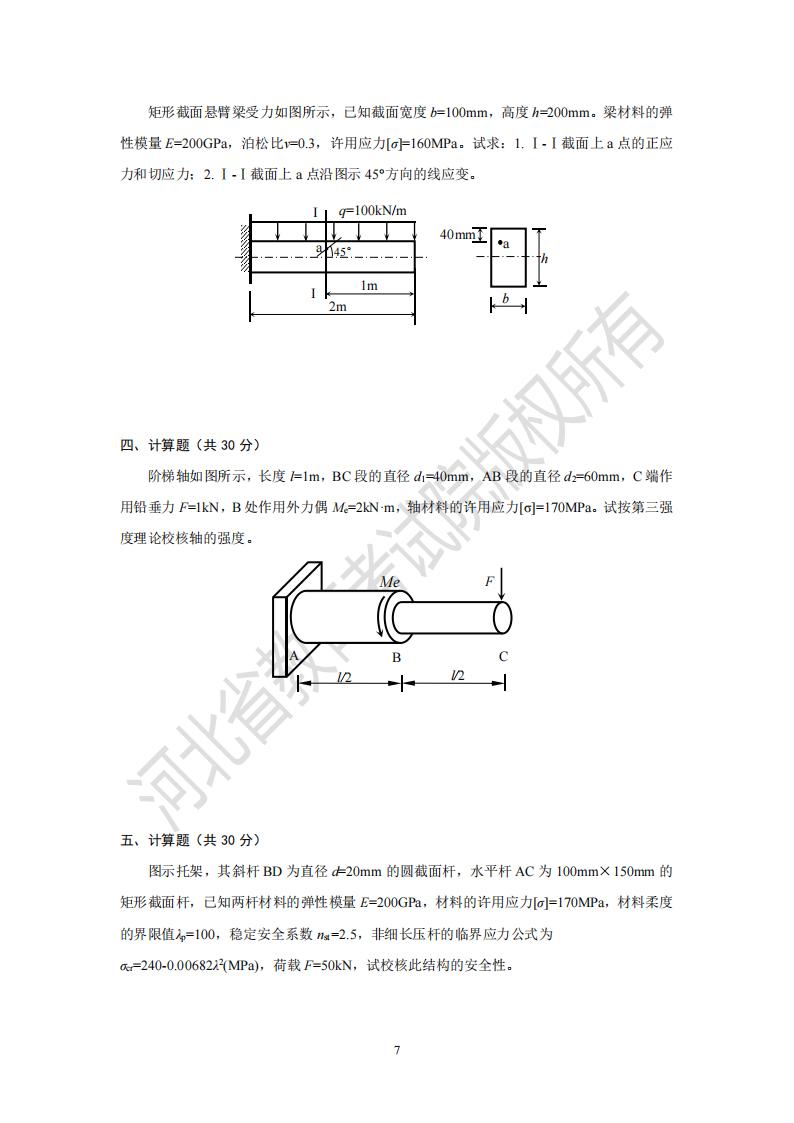 2025河北省專升本考試材料力學模擬真題及參考答案