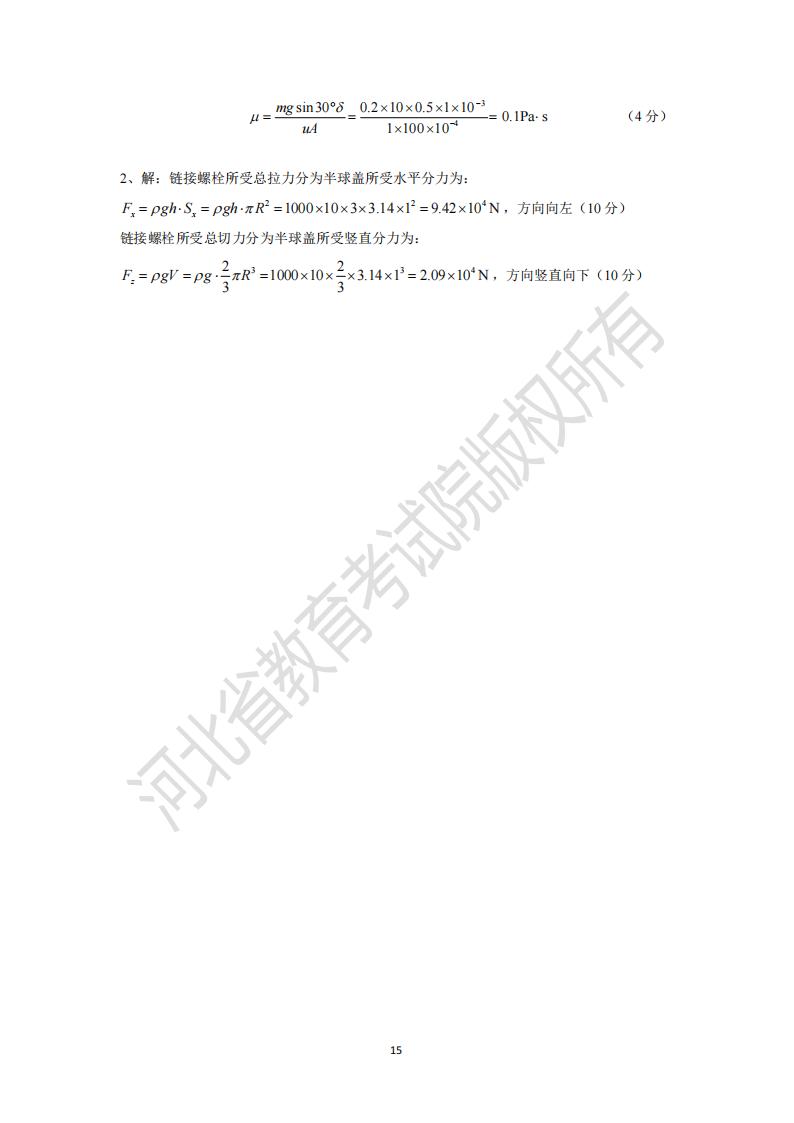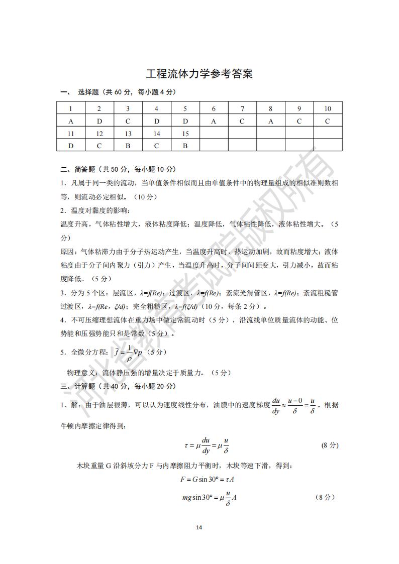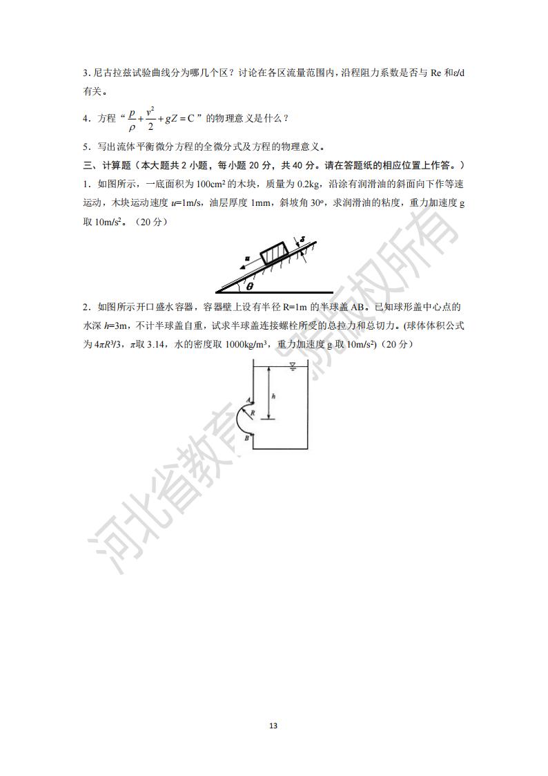 河北專升本工程流體力學(xué)模擬試卷及參考答案