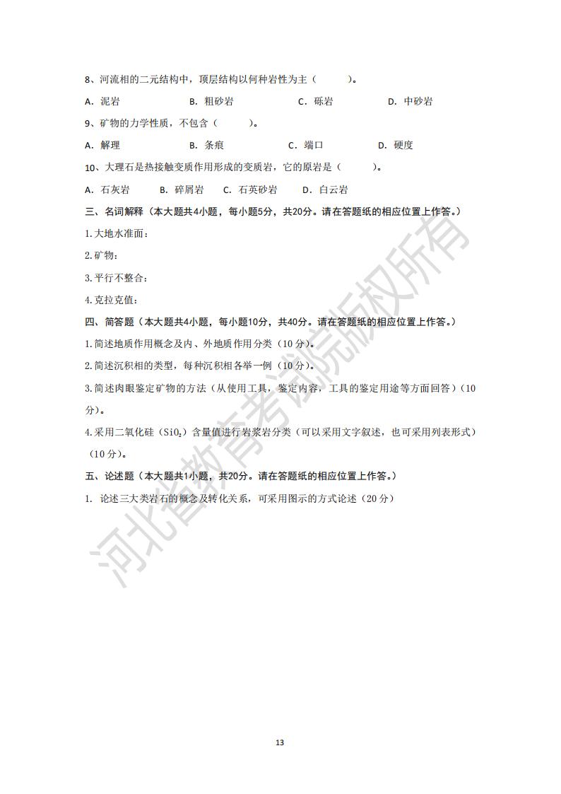 河北省普通高等學(xué)校專升本考試石油地質(zhì)基礎(chǔ)模擬試卷