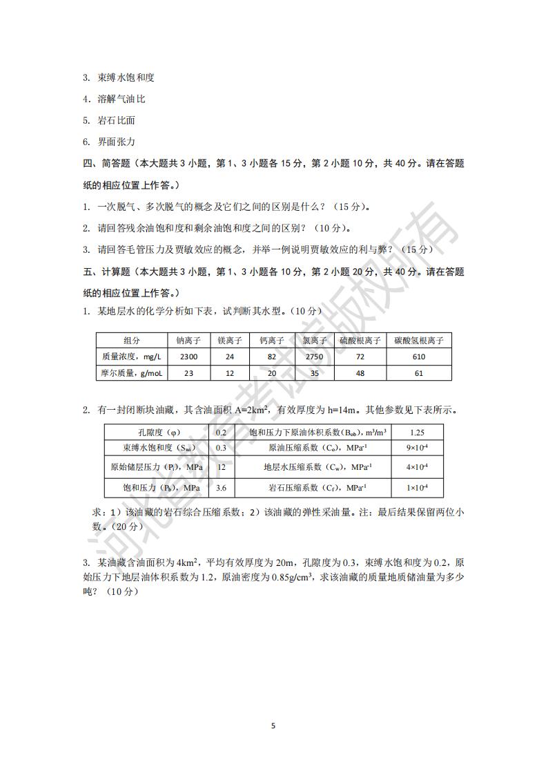 2. 請回答殘余油飽和度和剩余油飽和度之間的區別?(10 分)。