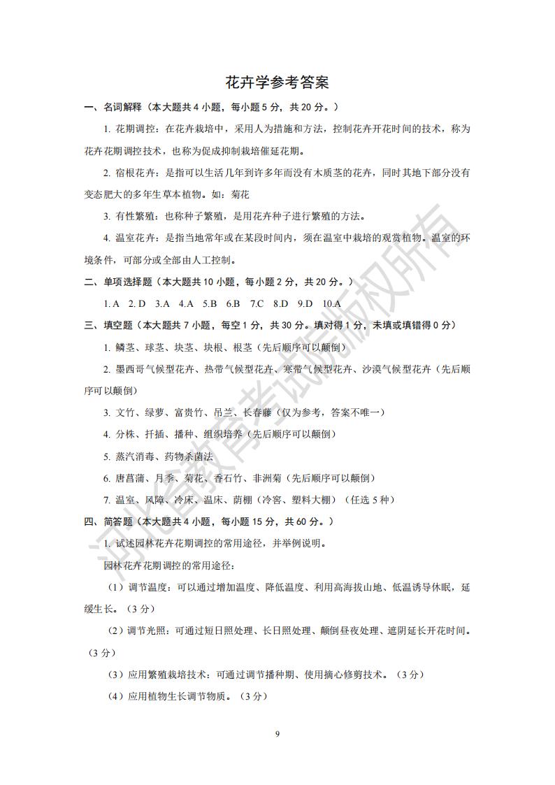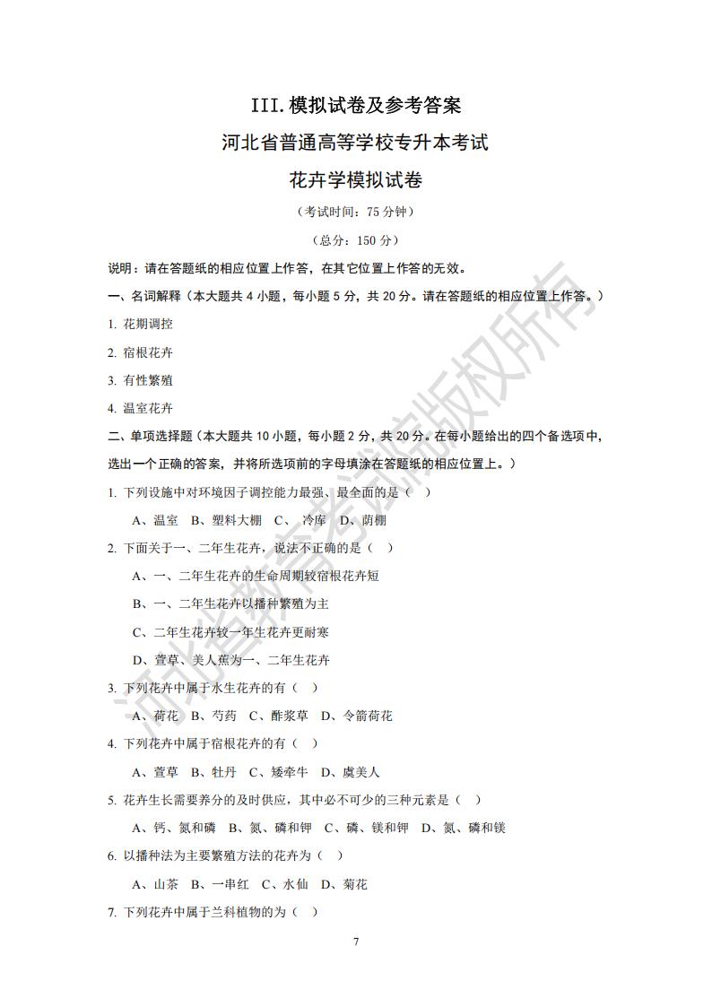 河北省普通高等學(xué)校專(zhuān)升本考試花卉學(xué)模擬試卷及參考答案