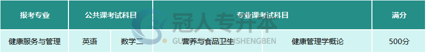 專業(yè)課考試科目:營養(yǎng)與食品衛(wèi)生+健康管理學(xué)概論,專業(yè)課每科150分,共300分。河北專升本考試健康服務(wù)與管理專業(yè)滿分是500分。