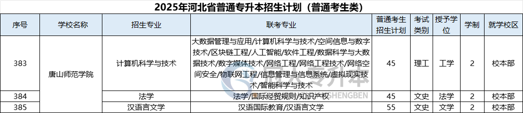 2025年河北省普通專升本唐山師范學院專升本招生計劃已公布,參加2025年河北專升本考試的考生請查看下表2025年唐山師范學院專升本招生計劃信息。