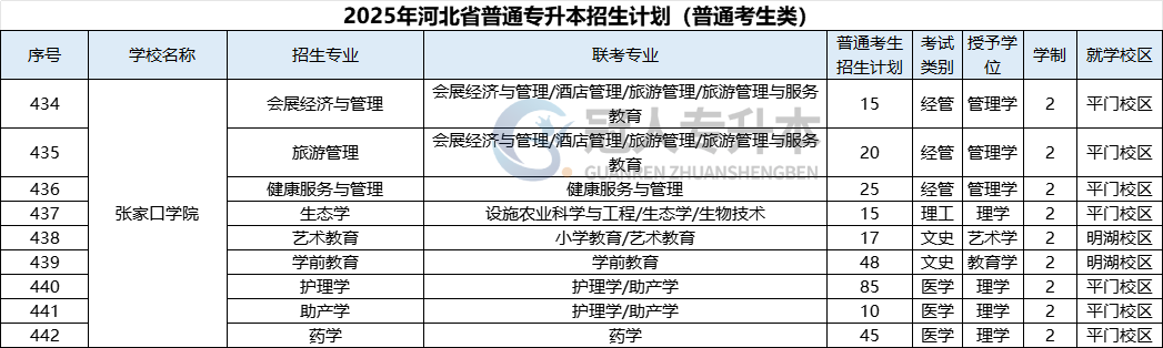 2025年河北省普通專升本張家口學院招生計劃本文地址: