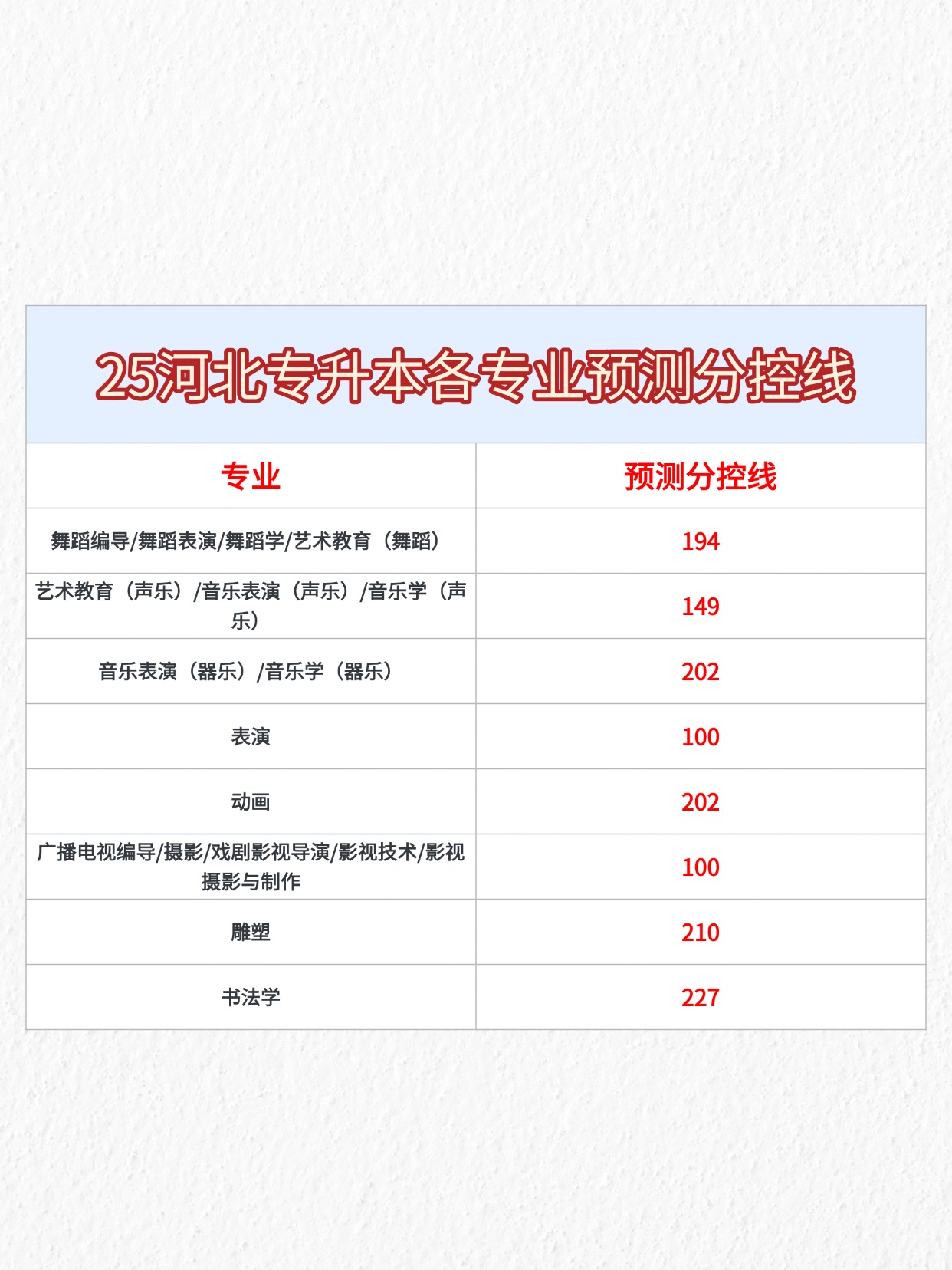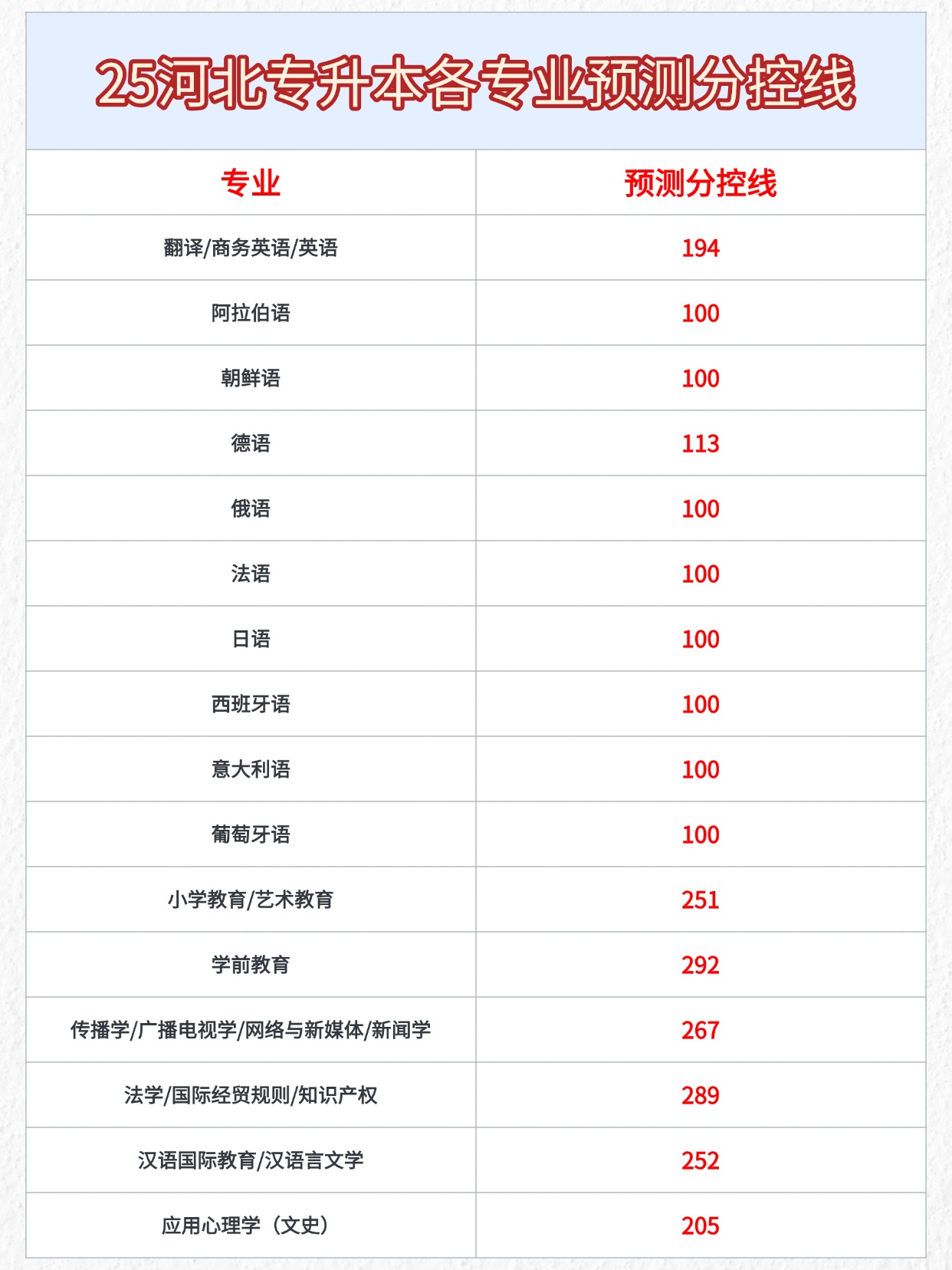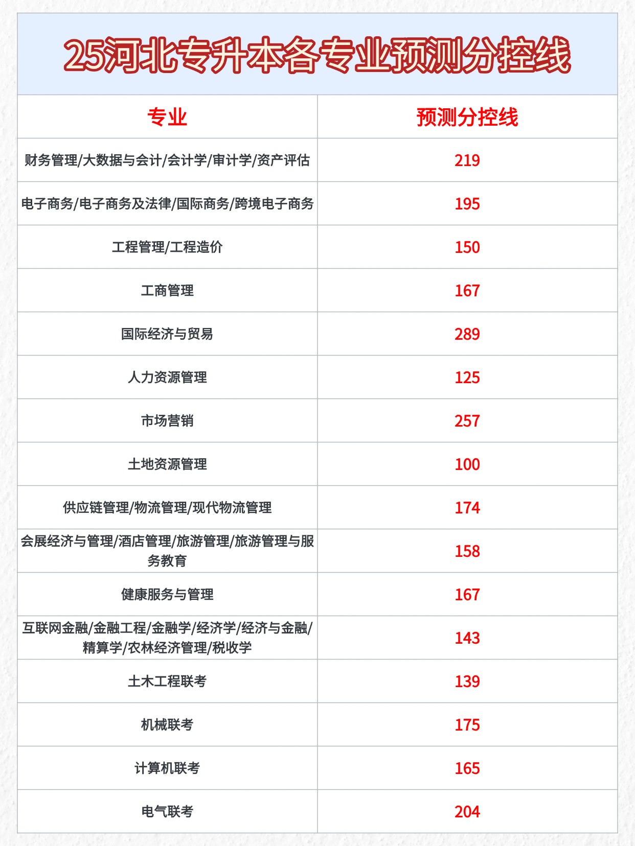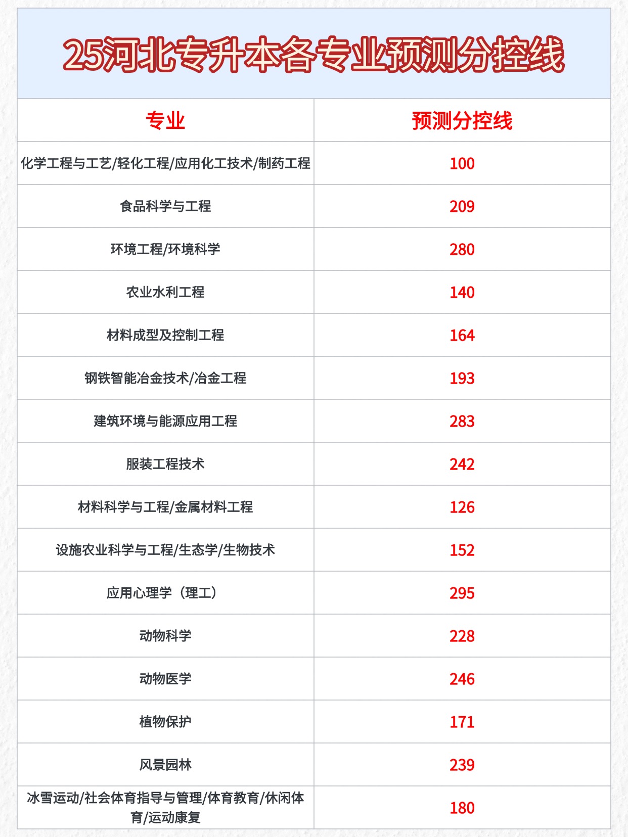 25年河北專升本的考生看過來了,結(jié)合25年的招生計(jì)劃,幫大家整理了各專業(yè)的預(yù)測分控線,大家可以參考一下!