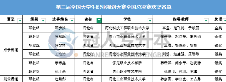 河北省第二屆全國大學生職業規劃大賽河北省高職院校獲獎名單
