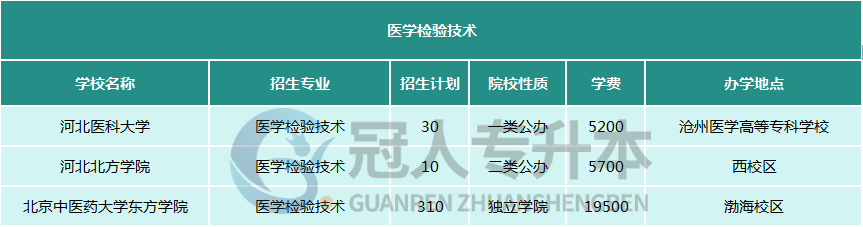 2024年河北專升本醫(yī)學(xué)檢驗技術(shù)專業(yè)招生院校及學(xué)費