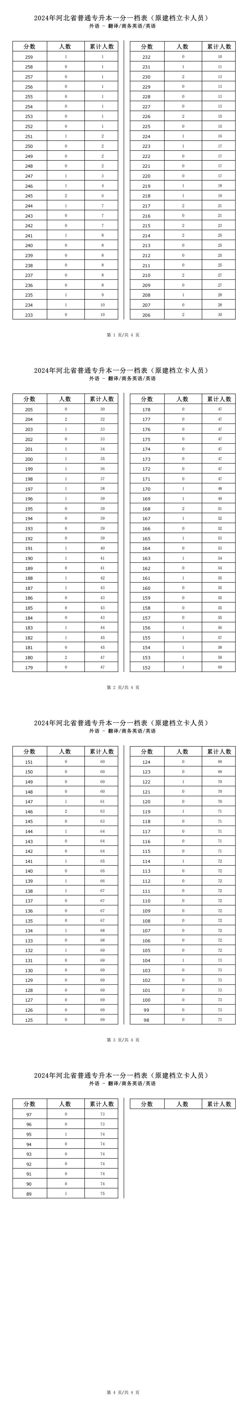 2025年河北外語類翻譯專業專升本建檔立卡一分一檔表參考數據