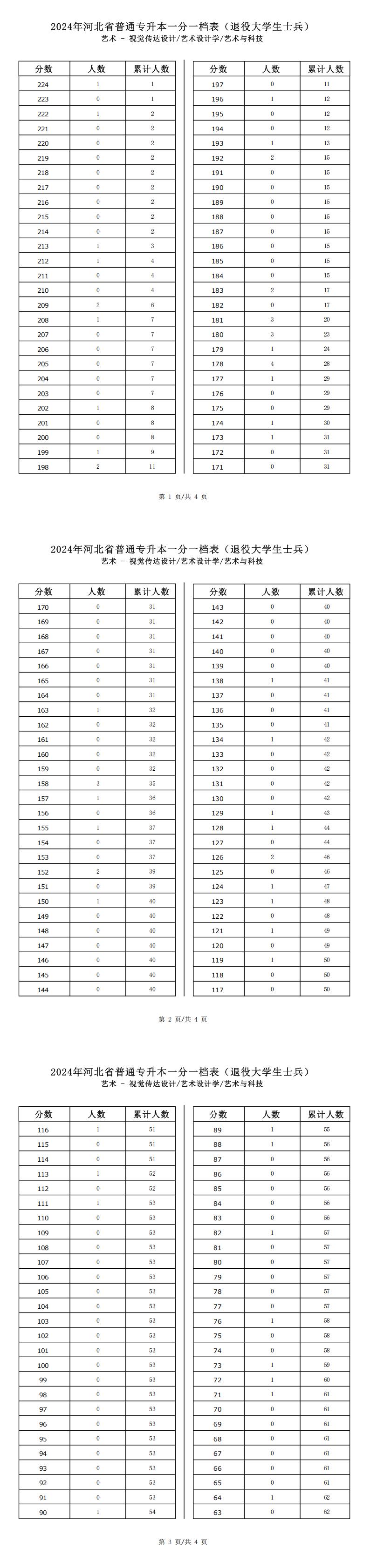 2025年河北藝術(shù)類藝術(shù)設計學專升本退役士兵考生一分一檔表參考數(shù)據(jù)