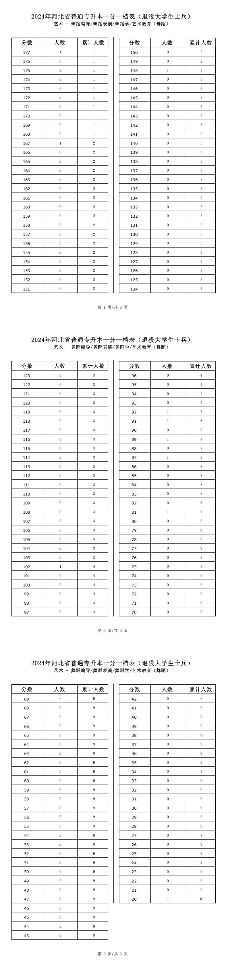2025年河北藝術類舞蹈編導專升本退役士兵考生一分一檔表參考數據